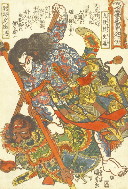 『水滸伝』は江戸時代の日本でも一大ブームとなり、曲亭馬琴や葛飾北斎、歌川国芳らの手によって、新たな物語や美術表現が展開していきました。現代でも、小説や漫画、映画、ドラマ、ゲームなど、多彩なメディアで広く親しまれています。